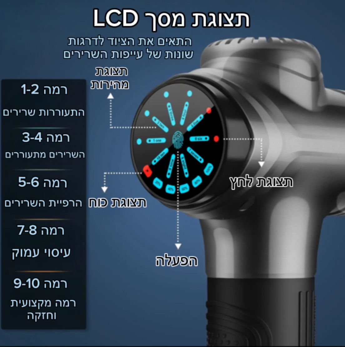 העיצוב הארגונומי והקל משקלו של האקדח מאפשרים שימוש נוח ונגיש לכל חלקי הגוף, בין אם מדובר בשרירי הגב, הכתפיים, השוקיים או אפילו הרגליים. האקדח מצויד בראשי עיסוי מרובי פונקציות, המאפשרים להתאים את העיסוי לצרכי המשתמש בצורה מושלמת.