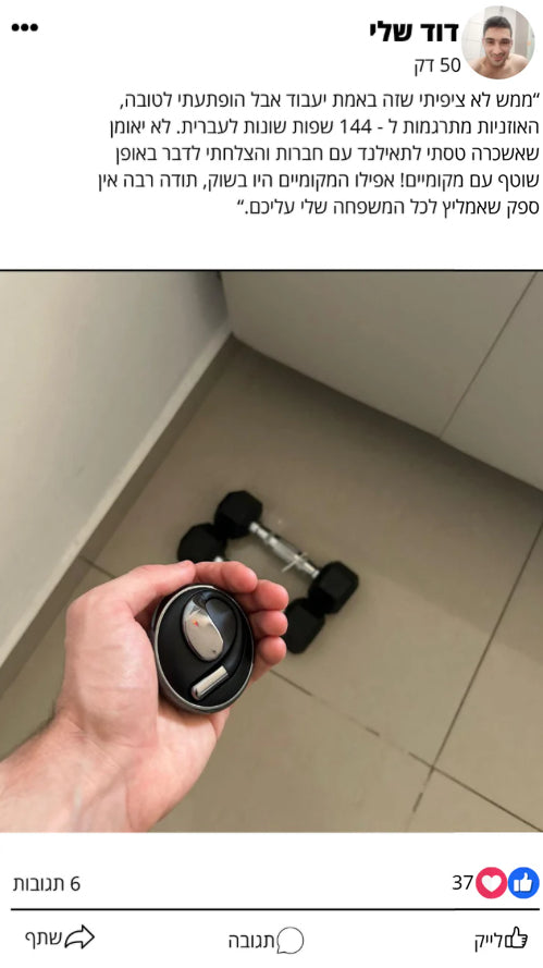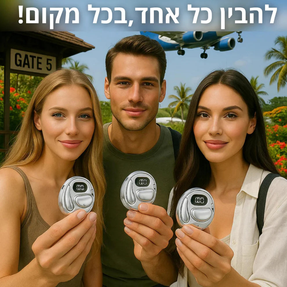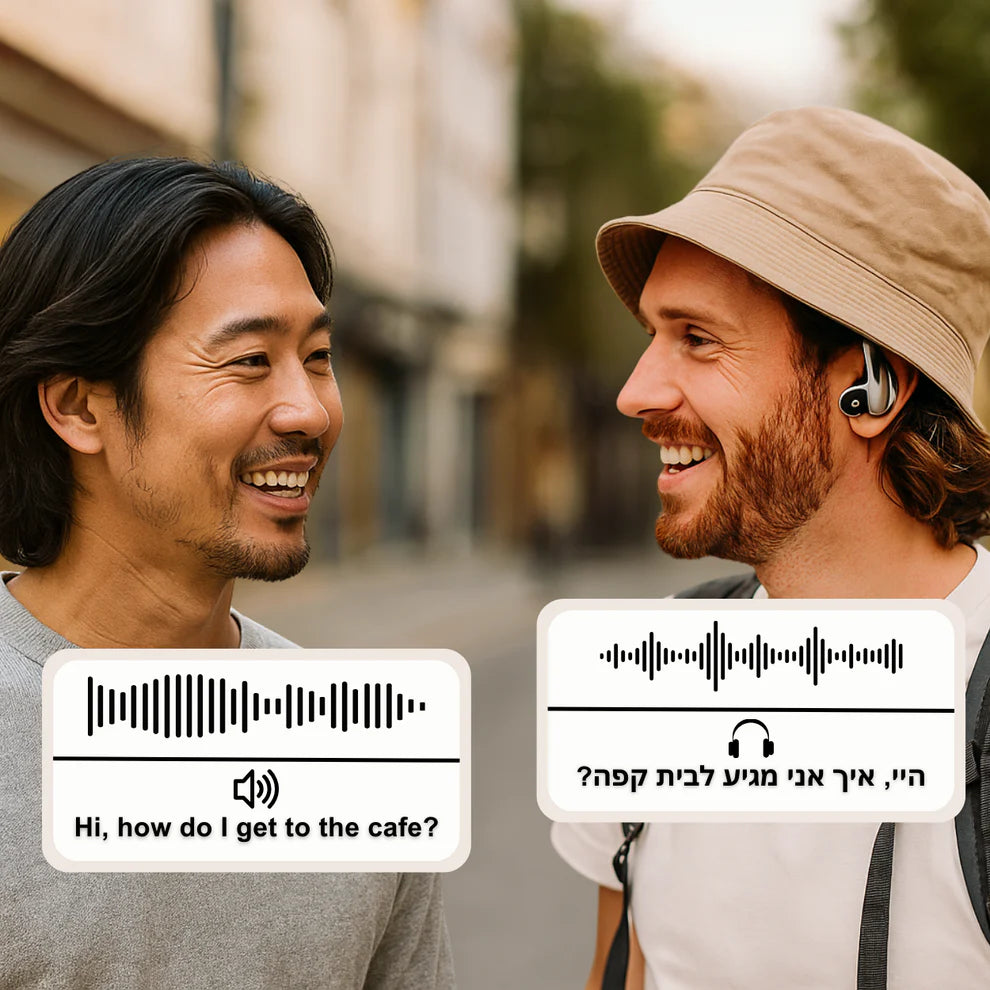 טסים לחו״ל? עובדים עם אנשים מכל העולם? האוזניות שלנו מתרגמות בזמן אמת מעל 144 שפות – בלי מתורגמנים, בלי אפליקציות מסורבלות.